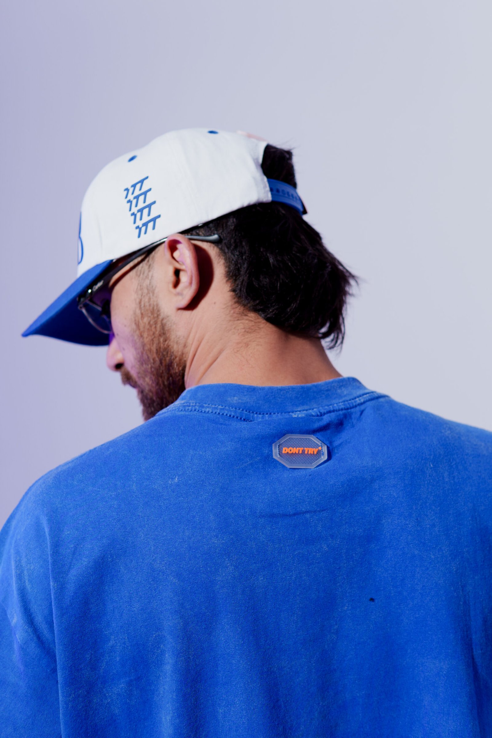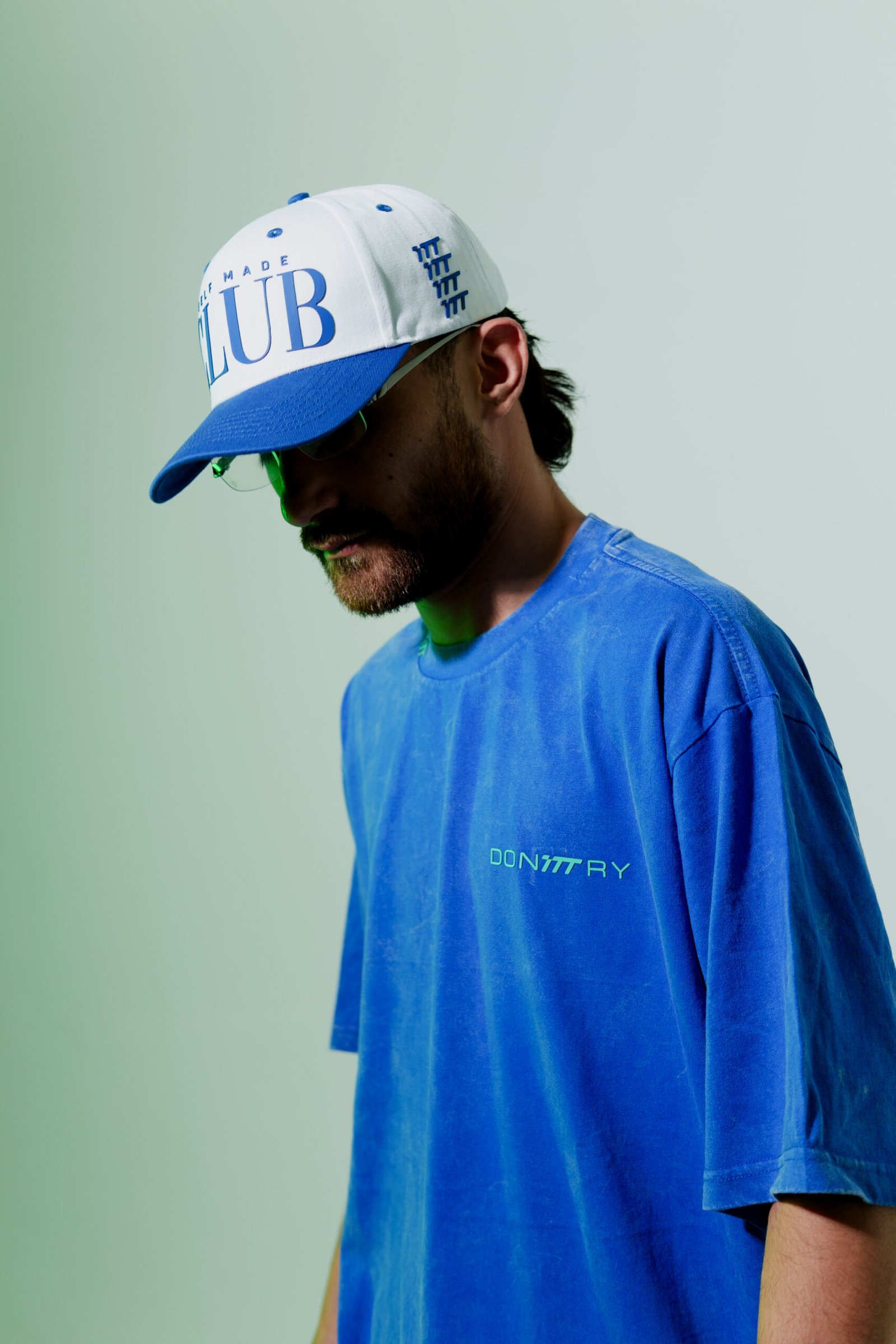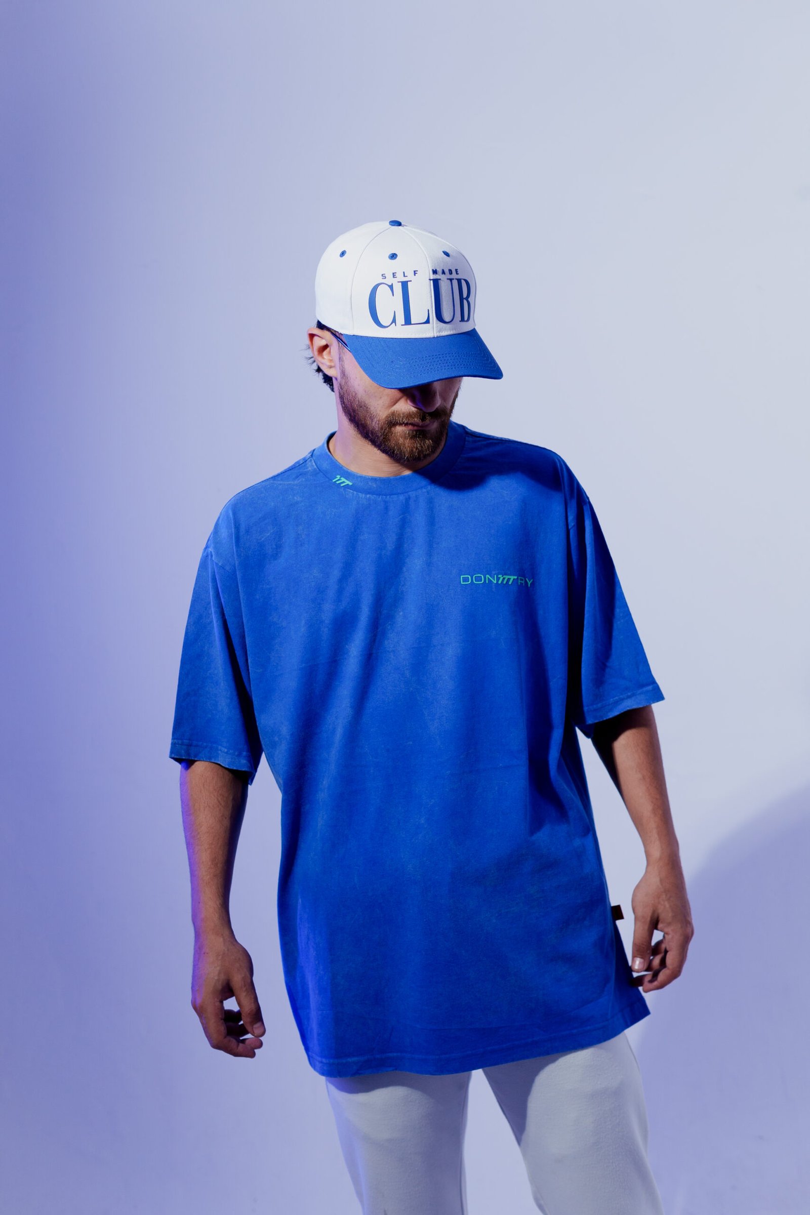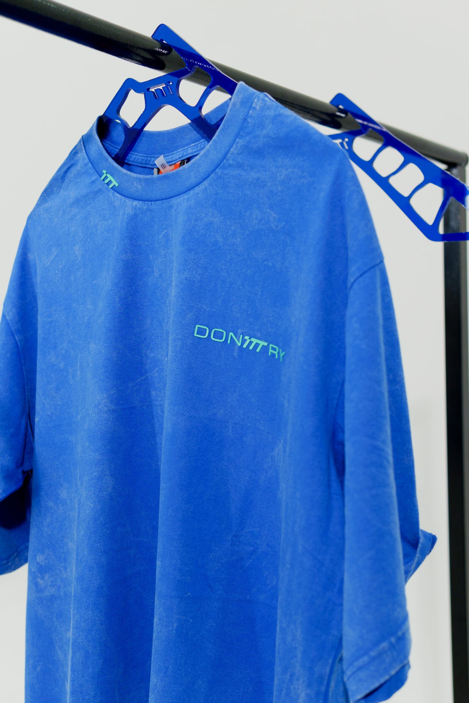 Camiseta oversize color azul lavado, logo frontal en alta densidad color blanco BASIC.