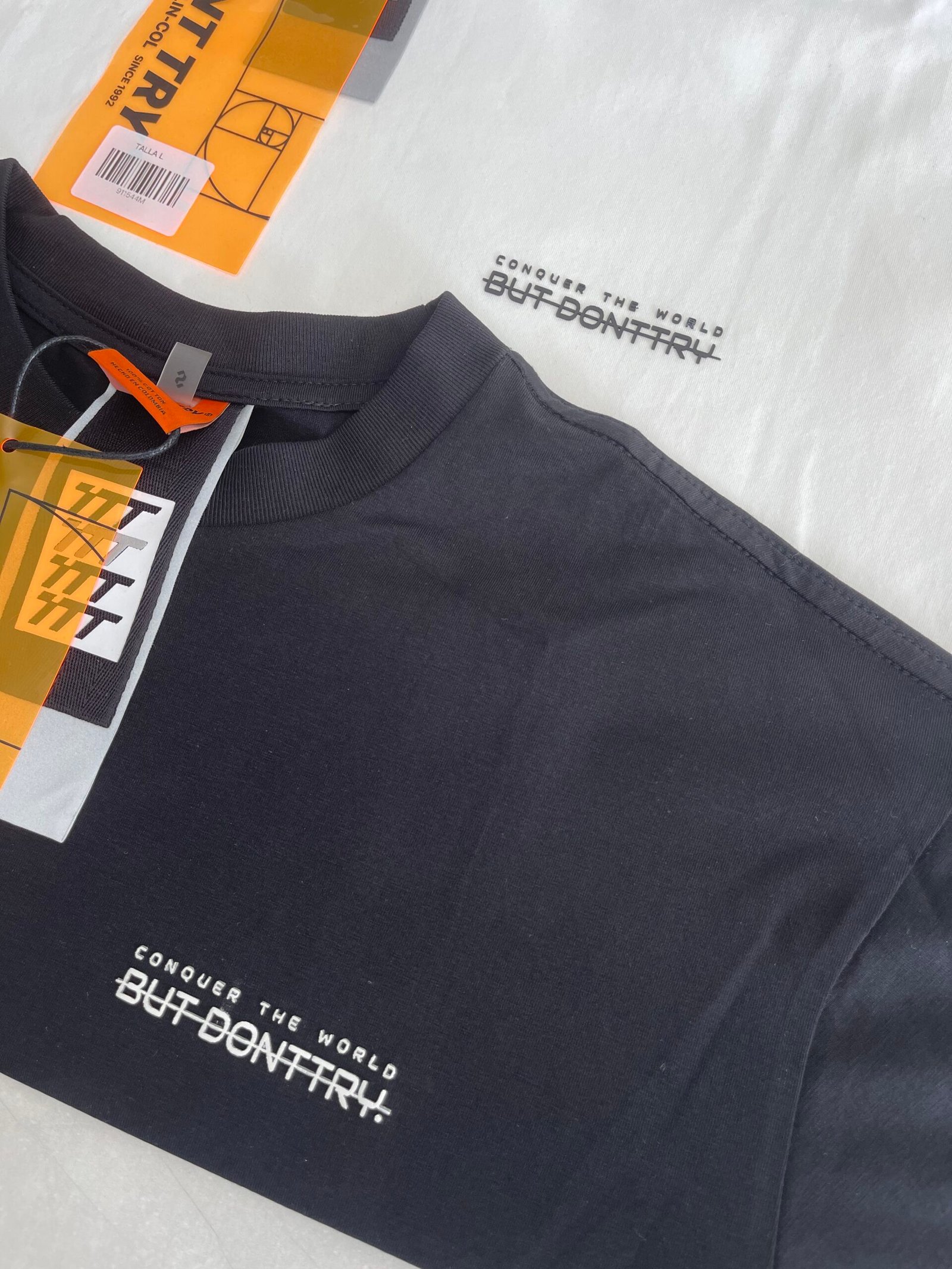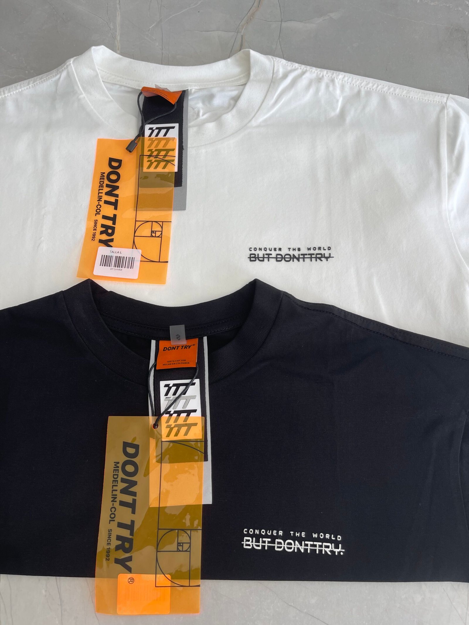 Sueña en grande, fija metas inimaginables, conquista el mundo, pero no te conformes: DontTry. La camiseta CONQUER lleva impresa la esencia de nuestra filosofía. Su frase poderosa te reta a superar tus límites y convertirte en la versión más valiente de ti mismo. Una prenda para quienes se atreven a soñar y conquistar.